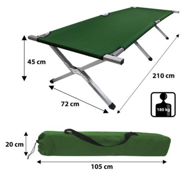 Masse: 218 x 80 x 47cm. zuverlässige und praktische Schlaflösung für den Einsatz. Stabile Aluminiumkonstruktion mit Eloxalschicht - strapazierfähiger Bezug - 200kg Belastbarkeit - ca. 10kg Gewicht - Vier Zugbänder am Kopfteil für straffe Bespannung der Liegefläche - Polyester 420D - Robuste Standfüße mit runder Auflagefläche.